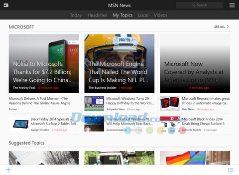 MSN News gây ấn tượng với giao diện người dùng Metro quen thuộc của Microsoft, hiển thị thông tin một cách rõ ràng và hấp dẫn. Ứng dụng cung cấp các bài viết đầy đủ để bạn đọc và cập nhật tin tức trên toàn thế giới. Ngoài ra, bạn còn có thể chọn lọc các tin tức cụ thể để theo dõi, giúp việc đọc tin trở nên thuận tiện và dễ dàng hơn.