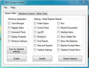 Với MSV System Utilities, việc kích hoạt lại các chức năng bị vô hiệu hóa trở nên dễ dàng hơn bao giờ hết.