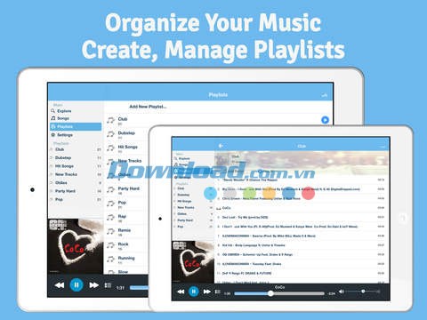 - Người dùng có thể tạo ra các danh sách phát không giới hạn và tự do thêm các bài hát vào các chế độ phát nhạc khác nhau.