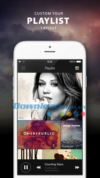 Người dùng có thể tự tạo các playlist nhạc cá nhân, tổng hợp từ các nguồn nhạc trên YouTube và iTunes.