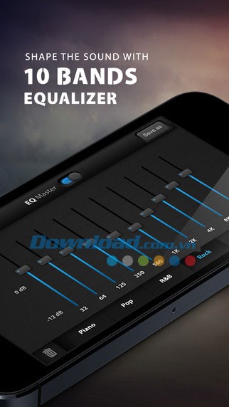 Bộ cân bằng âm thanh EQ 10 Band tích hợp cho phép bạn điều chỉnh âm thanh theo sở thích và phù hợp với nhiều thể loại nhạc khác nhau, cũng như môi trường nghe nhạc đa dạng.