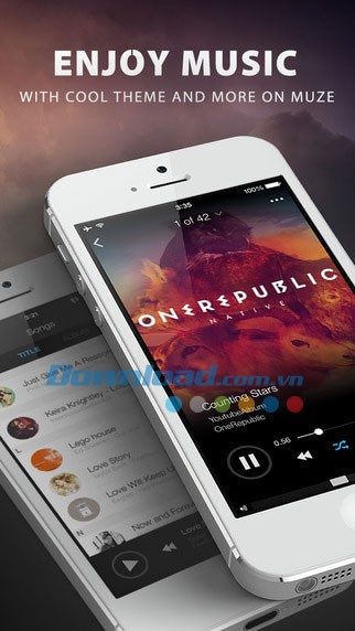 Tải và cài đặt Muze miễn phí lên thiết bị iDevice của bạn để tận hưởng thế giới âm nhạc không giới hạn, thưởng thức âm nhạc mọi lúc mọi nơi. Muze cho phép người dùng nghe nhạc từ các video trên YouTube , cũng như từ thư viện nhạc iTunes cá nhân, thông qua một trình phát đa phương tiện hiện đại và mang đậm dấu ấn thiết kế của Muze.