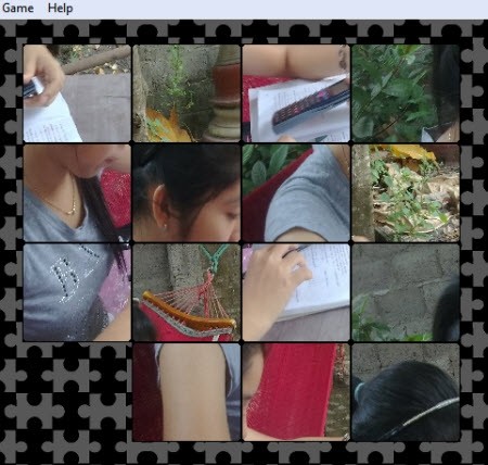 - Cách thay đổi trình tự sắp xếp các ô vuông ảnh trong lúc chơi như thế nào? Trong lúc chơi, vào Game > chọn Suffle Pieces để tự động thay đổi trình tự sắp xếp các ô vuông ảnh đã chia.