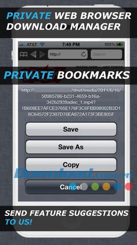 - Cho phép tải xuống các tập tin từ các trang web và lưu trữ chúng trong ứng dụng để xem riêng tư.