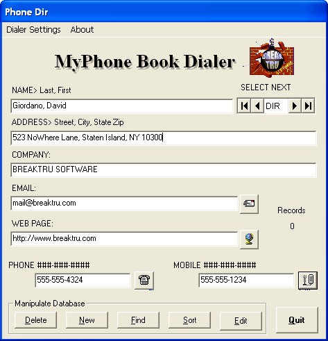 MyPhone Book Dialer cho phép lưu trữ đa dạng các trường thông tin, bao gồm: tên đầy đủ, số điện thoại cố định, số điện thoại di động, địa chỉ nhà riêng, tên công ty, địa chỉ email và trang web cá nhân.