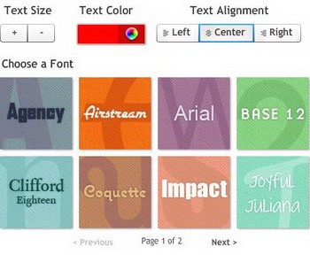 Tab Card Text cho phép bạn nhập lời chúc ngắn gọn, thay đổi font chữ, kích thước (tăng hoặc giảm bằng dấu cộng hoặc trừ), màu chữ và vị trí của dòng chữ trên thiệp.