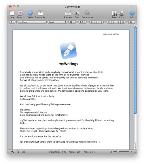 Chúng ta đánh giá cao sự đơn giản và tinh tế của hệ điều hành OS X. Đó là lý do tại sao myWritings ra đời.
