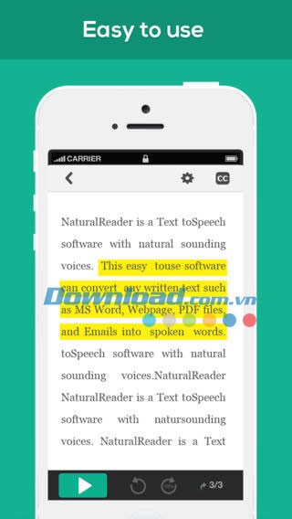 - Thao tác sử dụng đơn giản, chỉ cần chạm vào câu cần đọc, ứng dụng NaturalReader Text to Speech for iOS sẽ tự động đọc to đoạn văn bản đó.