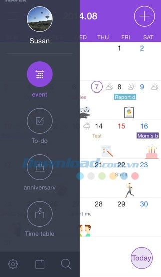 Phân loại các loại lịch trình và ngày kỷ niệm bằng nhiều màu sắc khác nhau, giúp việc quản lý trở nên trực quan hơn. Thêm sticker để làm cho lịch điện tử của bạn thêm sinh động, tránh sự nhàm chán thường thấy ở các ứng dụng lịch khác.
