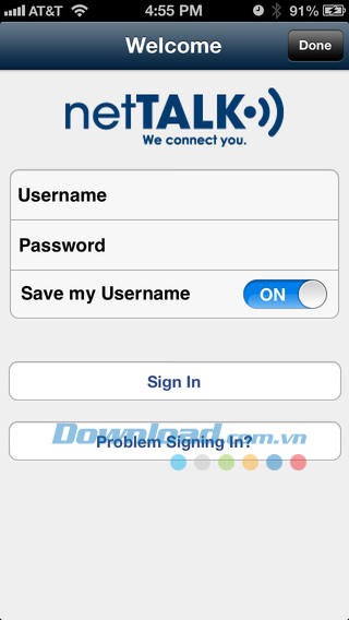 - Việc tạo một tài khoản netTALK là điều kiện tiên quyết để có thể sử dụng ứng dụng.
