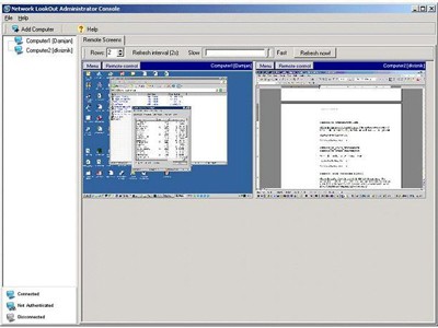 Network LookOut Administrator cung cấp khả năng quan sát trực tiếp giao diện làm việc của các máy tính khác trong mạng. Tính năng này cho phép bạn theo dõi liên tục các hoạt động đang diễn ra trên các thiết bị được kết nối.