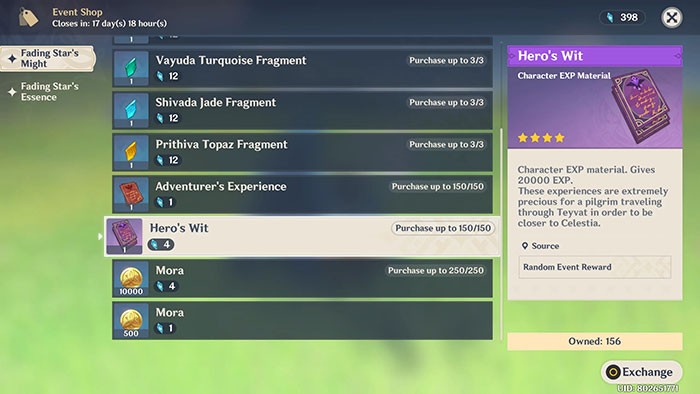 Người chơi có thể mua sách EXP từ Tubby trong cửa hàng Serenitea. So với việc chờ đợi 1 tháng để cửa hàng khôi phục hàng hóa, cửa hàng của Tubby chỉ mất 1 tuần.