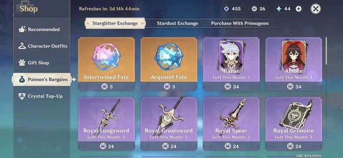 Dù vậy, vì Masterless Starglitter là một loại tiền tệ đặc biệt dùng để mua các vật phẩm hiếm, người chơi nên cân nhắc kỹ trước khi sử dụng. Cách duy nhất để có được Masterless Starglitter là thông qua việc rút vũ khí 4/5 sao hoặc nhân vật từ Wish mà bạn đã sở hữu.