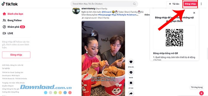 Bước 1: Mở TikTok trên trình duyệt web quen thuộc và Đăng nhập vào tài khoản TikTok của bạn.