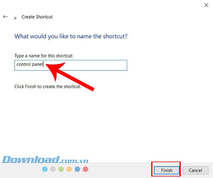 Bước 3: Tiếp theo, nhập tên mà bạn muốn đặt cho phím tắt này vào trường tên. Cuối cùng, nhấn vào nút Finish để hoàn tất quá trình tạo phím tắt.