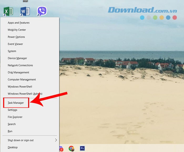 Bước 1: Để mở Power User Menu, hãy nhấn đồng thời phím Windows và phím X, sau đó chọn Task Manager từ danh sách hiển thị. Một cách khác, bạn có thể sử dụng tổ hợp phím Ctrl + Shift + Escape để khởi động Task Manager.