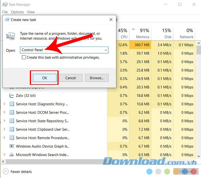 Làm thế nào để mở Control Panel từ Task Manager?