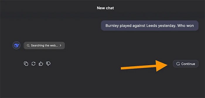 Tiếp theo, hãy đặt câu hỏi về bất kỳ sự kiện gần đây nào, ví dụ như kết quả một trận đấu bóng đá đã diễn ra: