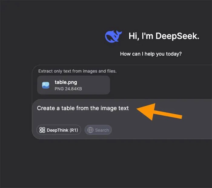 Chỉ cần kéo và thả hình ảnh vào giao diện DeepSeek. Sau đó, yêu cầu AI tạo bảng từ thông tin có trong hình ảnh.