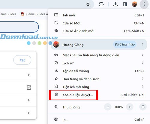 Trong cửa sổ mới hiện ra, hãy chọn Xóa dữ liệu duyệt web.