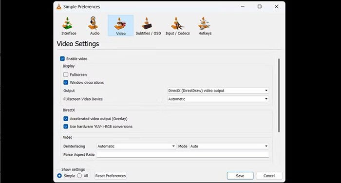 Việc điều chỉnh này sẽ giúp VLC sử dụng DirectX (DirectDraw) để giải mã và hiển thị video, tăng khả năng tương thích và khắc phục các vấn đề liên quan đến việc phát video.