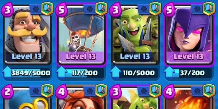 Bộ bài lý tưởng nên bao gồm sự kết hợp của các thẻ thuộc nhiều độ hiếm khác nhau: Common, Rare, Epic, Legendary và Champion. Việc sử dụng đa dạng các loại thẻ sẽ mở ra nhiều phương án tấn công và phòng thủ, đồng thời giúp cân bằng lượng Elixir tiêu hao trong mỗi trận đấu.