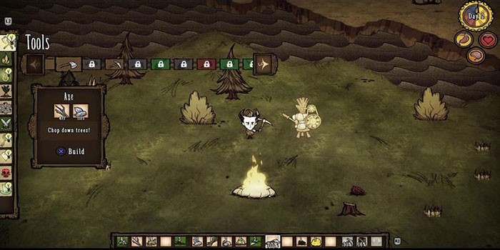 Don't Starve Together được biết đến với độ khó cao, đòi hỏi người chơi phải chủ động thu thập tài nguyên và tự tay chế tạo các công cụ cần thiết.
