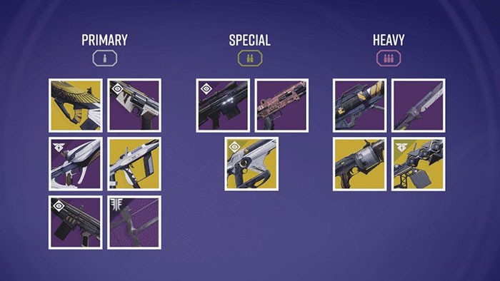 Trong Destiny, Guardian có khả năng mang theo tối đa ba loại vũ khí khác nhau, mỗi loại được chỉ định vào một vị trí cụ thể.