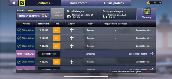 Việc lập kế hoạch cho các hợp đồng chuyến bay từ nhiều hãng hàng không khác nhau là yếu tố then chốt để duy trì và phát triển hoạt động kinh doanh của sân bay. Tuy nhiên, tương tự như các hợp đồng thực tế, game thủ cần xem xét kỹ lưỡng các điều khoản và yêu cầu của từng hợp đồng trước khi đưa ra quyết định. Hãy dành thời gian nghiên cứu thông tin chi tiết được hiển thị trên trang hợp đồng.