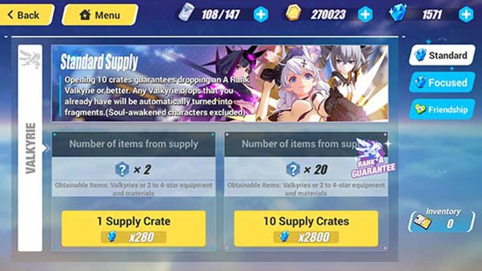 Hệ thống Gacha có thể mang lại những Valkyrie và trang bị mạnh mẽ. Hãy sử dụng nó một cách thông minh.