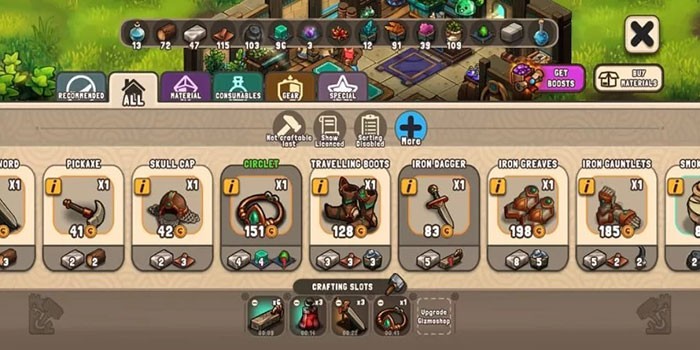 Việc điều hành một cửa hàng hiệu quả trong trò chơi này phụ thuộc rất lớn vào khả năng chế tạo, tạo ra những sản phẩm độc đáo để kinh doanh. Người chơi cần thu thập các loại vật liệu khác nhau, và có nhiều cách để thực hiện điều này.