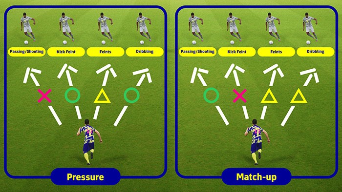 Khi đối mặt với các cầu thủ tấn công của đối phương trong tình huống 1v1, kỹ thuật Match-up sẽ giúp bạn kiểm soát tình hình tốt hơn. Sử dụng Match-up để bám sát đối phương và hạn chế không gian hoạt động của họ.