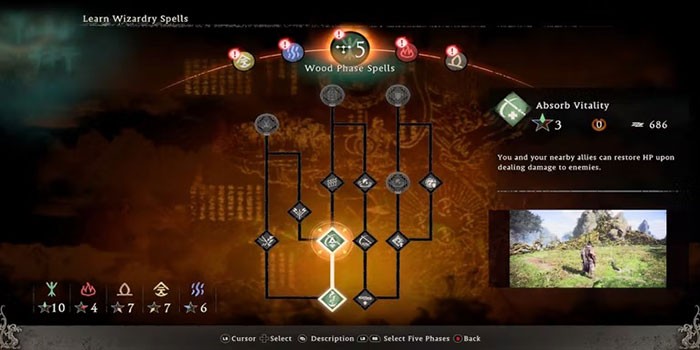 Thế nhưng, có một kỹ năng phép thuật đặc biệt mà game thủ nên ưu tiên mở khóa ngay từ đầu, đó là Absorb Vitality, thuộc hệ Wood Virtue. Khi kích hoạt, kỹ năng này cho phép nhân vật hồi phục lượng máu sau mỗi đòn tấn công trúng đích từ kẻ thù.