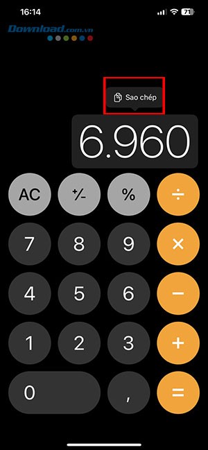Ứng dụng Máy tính trên iPhone sở hữu một tính năng sao chép và dán vô cùng tiện dụng, cho phép người dùng lấy kết quả cuối cùng mà không cần mở ứng dụng trực tiếp.