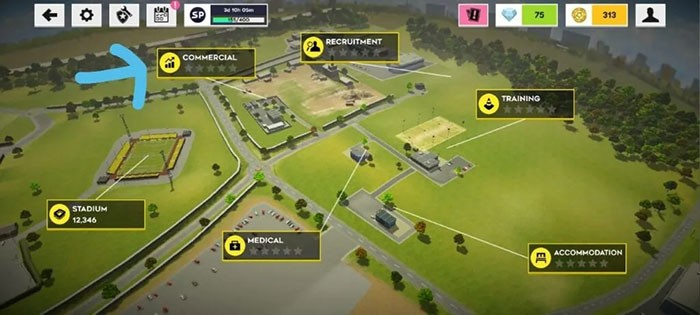 Mục tiêu gia tăng doanh thu của game thủ bắt đầu từ việc nâng cấp hạng mục Thương Mại (Commercials) tại sân vận động lên ít nhất cấp độ hai. Việc này có thể được thực hiện bằng cách sử dụng 75 viên đá quý được trao tặng khi khởi động trò chơi.