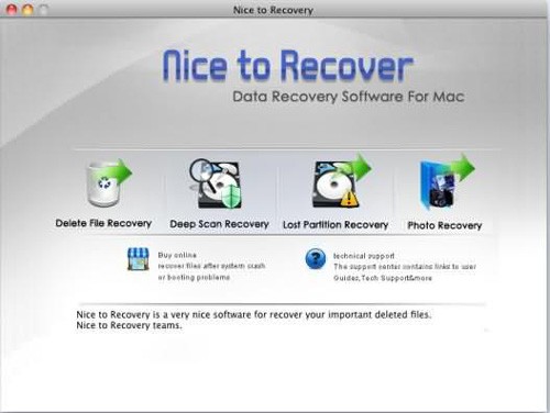 Bên cạnh khả năng phục hồi dữ liệu cá nhân, ứng dụng này còn có thể khắc phục các tập tin hệ thống bị lỗi. Nice to Recover Data for Mac được xây dựng với bốn chức năng chính, đồng thời đảm bảo giao diện thân thiện và dễ dàng sử dụng.