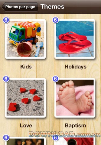 Kho theme ảnh phong phú với 60 theme sách ảnh khác nhau, đáp ứng đa dạng nhu cầu, từ các dịp sinh nhật, lễ Tết đến những sự kiện đặc biệt khác.