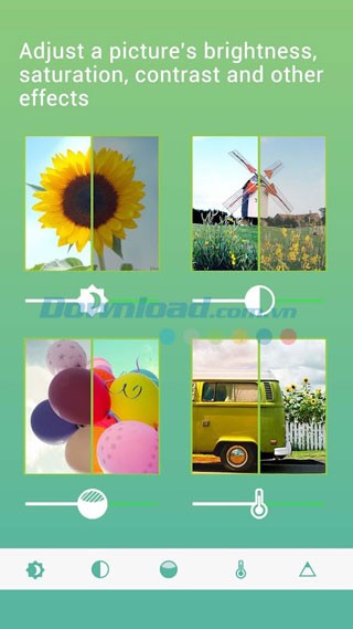Hơn nữa, ứng dụng cho phép bạn điều chỉnh các thông số như độ sáng, độ tương phản, độ bão hòa và nhiều hiệu ứng khác để tạo ra những bức ảnh ưng ý.