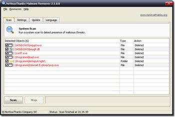 NoVirusThanks Malware Remover có khả năng phát hiện và loại bỏ các phần mềm độc hại cụ thể như trojan, worm, phần mềm lừa đảo, spyware và adware.