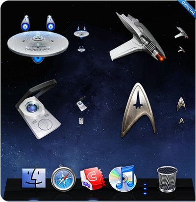 Những tín đồ trung thành của Star Trek chắc chắn sẽ hài lòng với bộ biểu tượng dành cho cả Mac OS và Windows Vista, bao gồm các vật phẩm quen thuộc như thiết bị liên lạc của Captain Kirk, máy phân tích của Spock hay tàu U.S.S. Enterprise.