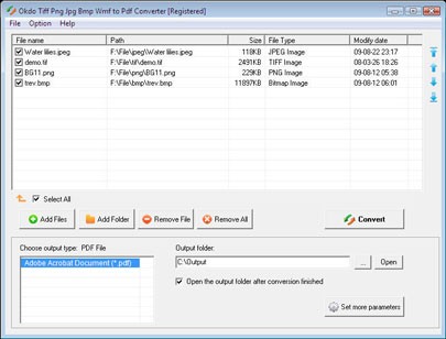 Okdo Tiff Png Jpg Bmp Wmf to Pdf Converter là một ứng dụng chuyên dụng, cung cấp khả năng chuyển đổi PDF một cách hiệu quả và đơn giản. Công cụ này cho phép bạn dễ dàng chuyển đổi nhiều file với các định dạng khác nhau như jpg, jpeg, bmp, tif, wmf, png sang định dạng PDF.