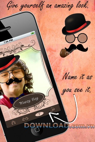 Ứng dụng cung cấp một loạt các phụ kiện đa dạng dành cho nhân vật nam, bao gồm mũ, kính râm, bộ râu và gậy.