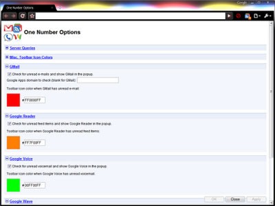 One Number là một tiện ích mở rộng hữu ích cho trình duyệt Google Chrome, được thiết kế để giúp người dùng dễ dàng và nhanh chóng nắm bắt số lượng tin nhắn chưa đọc trong các dịch vụ phổ biến như Gmail, Wave, Voice và Google Reader.