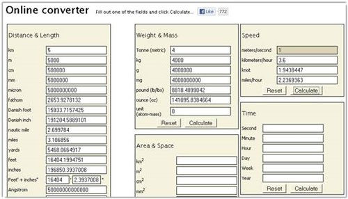 Mặc dù không được thiết kế chuyên biệt như một công cụ chuyển đổi đơn vị trực tuyến, trang web này vẫn cung cấp khả năng hỗ trợ cho hầu hết các nhóm đơn vị phổ biến.