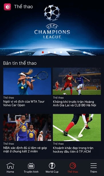 Ứng dụng mang đến hàng trăm sự kiện trực tiếp mỗi tháng, bao gồm các giải đấu Ngoại hạng Anh, V-League và các chương trình giải trí được phát sóng đồng thời.