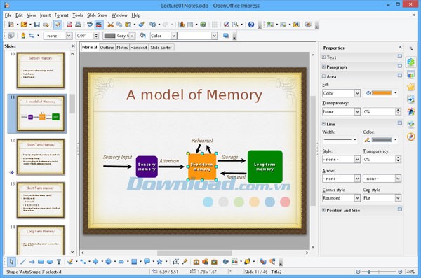 Impress là công cụ tạo bài thuyết trình đa phương tiện ấn tượng. Các hiệu ứng đặc biệt, clip art 2D và 3D, hình ảnh động và các công cụ vẽ giúp bài thuyết trình trở nên sống động.