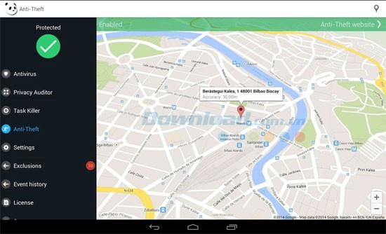 - Phần mềm sẽ hiển thị vị trí thiết bị trên bản đồ theo thời gian thực nếu điện thoại hoặc máy tính bảng bị mất hoặc bị đánh cắp.