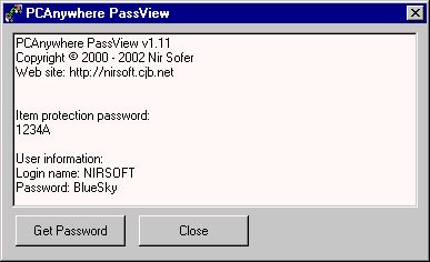Việc sử dụng PCAnywhere PassView rất đơn giản. Bạn không cần phải cài đặt phần mềm, chỉ cần chạy tập tin ‘PCAnyPass.exe’ và nhấn nút Get Password.