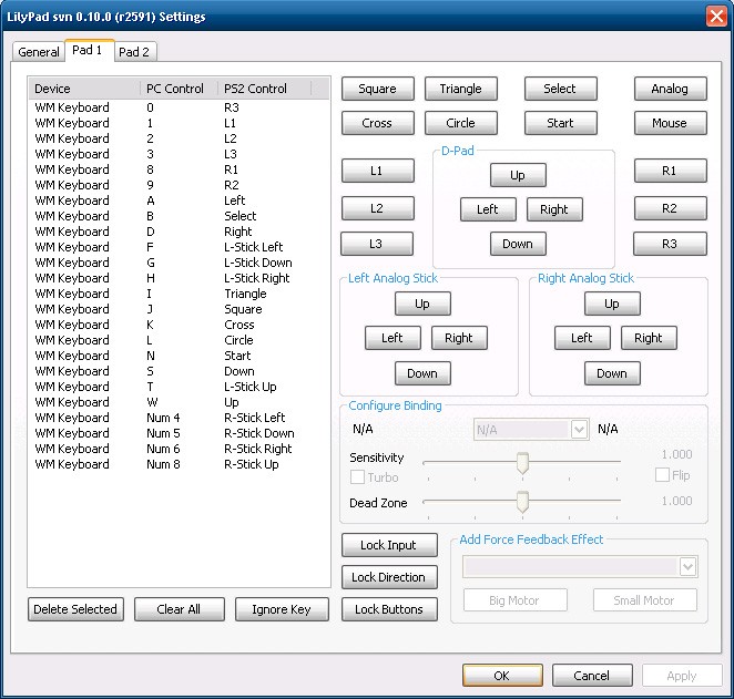 Đối với phần gamepad, hãy chọn Lilypad và thực hiện cấu hình tương tự như sau: