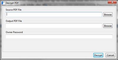 Chức năng này thực hiện thao tác ngược lại với mã hóa, giải mã các file PDF đã được bảo vệ. Điều kiện tiên quyết là bạn phải nhập đúng mật khẩu của file gốc vào mục Owner Password.